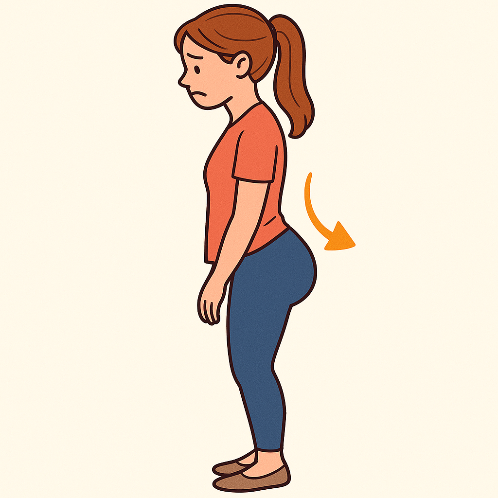 우리가 거울을 보거나 사진을 찍을 때, 허리가 꺾여 있고 배가 살짝 앞으로 나오면서 엉덩이가 뒤로 빠져 보이는 체형을 흔히 볼 수 있습니다. 특히 오랜 시간 앉아 있는 직장인, 학생, 그리고 하이힐을 자주 신는 여성분들에게서 자주 나타나는 현상인데요.