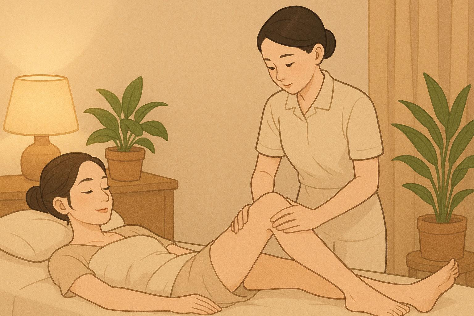 📍② 허벅지 바깥 (측면) 마사지 – 옆으로 누워서!