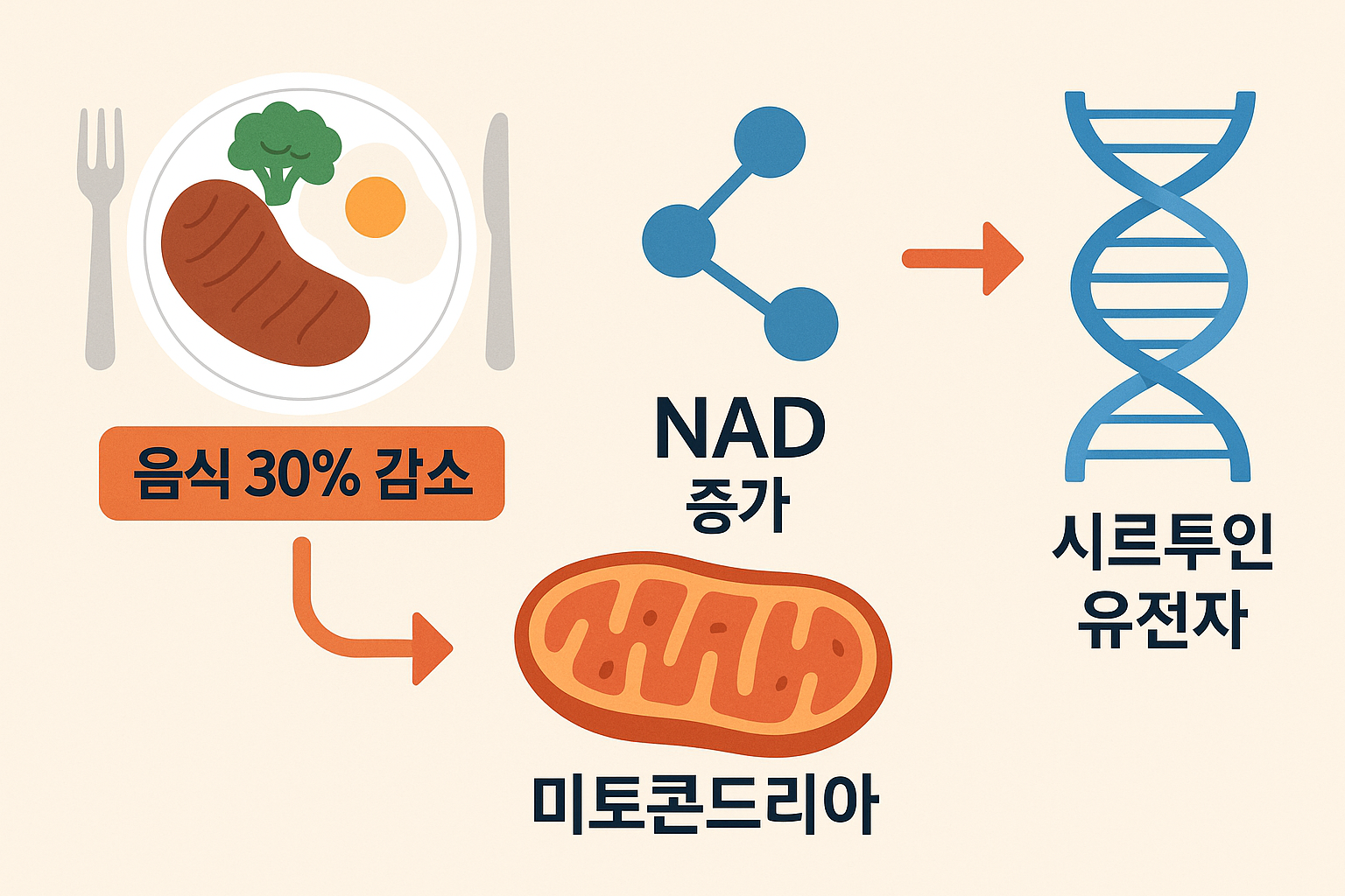 음식을 줄여 세포 안에서 NAD와 시르투인이 활발히 작동하듯,